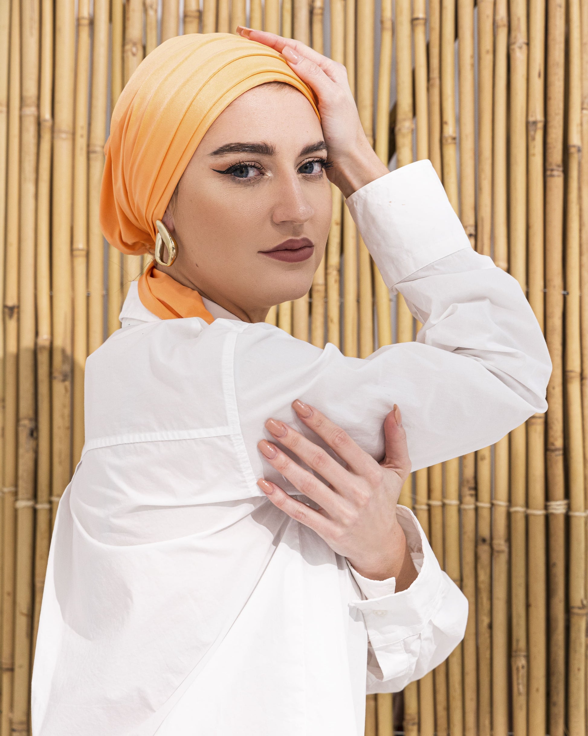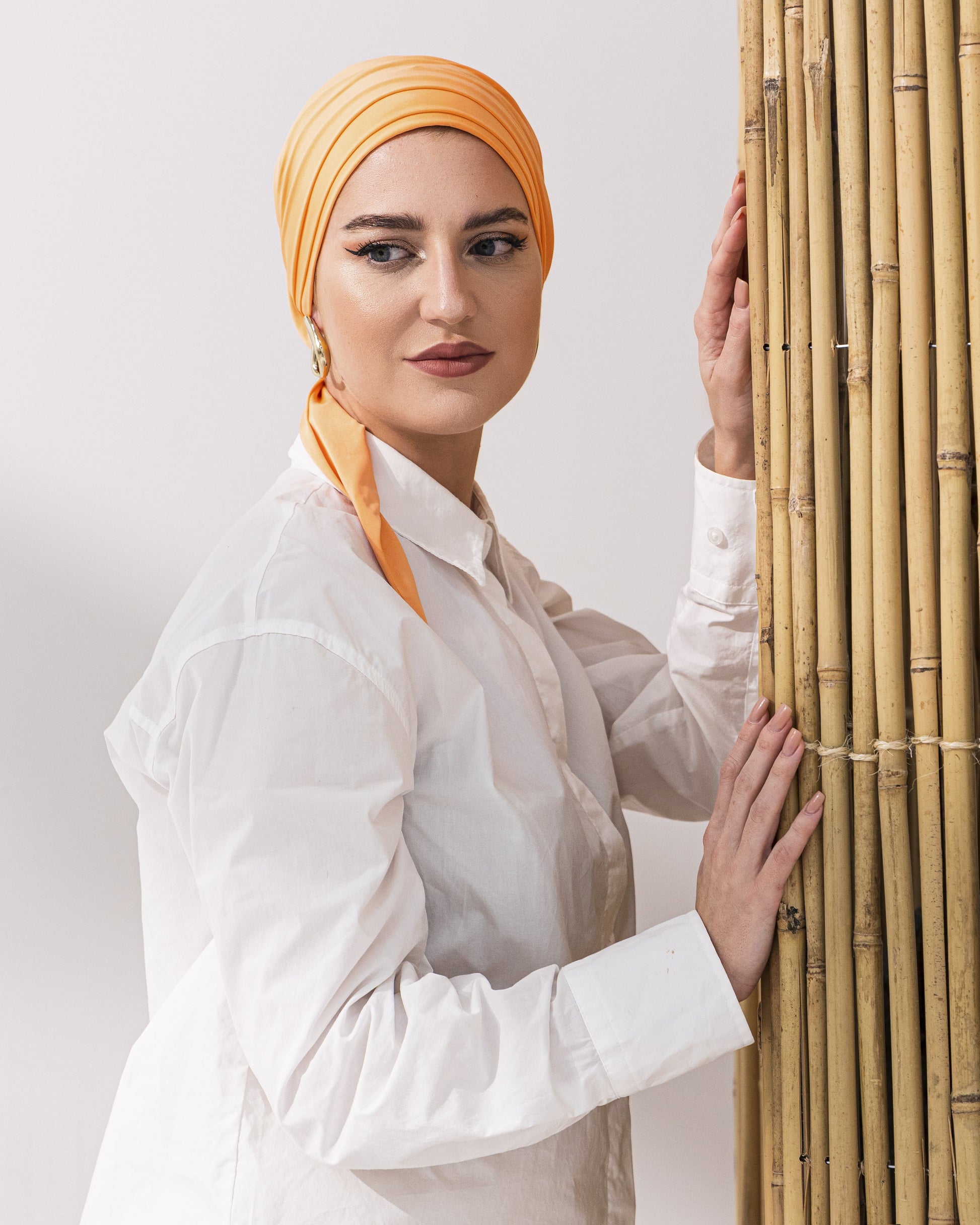 ▪Our two-tail turban offers endless styling possibilities. Whether you prefer a sleek and sophisticated look or a trendy and fashion-forward appearance, this turban can be effortlessly styled to match your personal taste. The two tails gracefully drape down, allowing you to tie them in various ways, creating a unique and personalized look every time.
